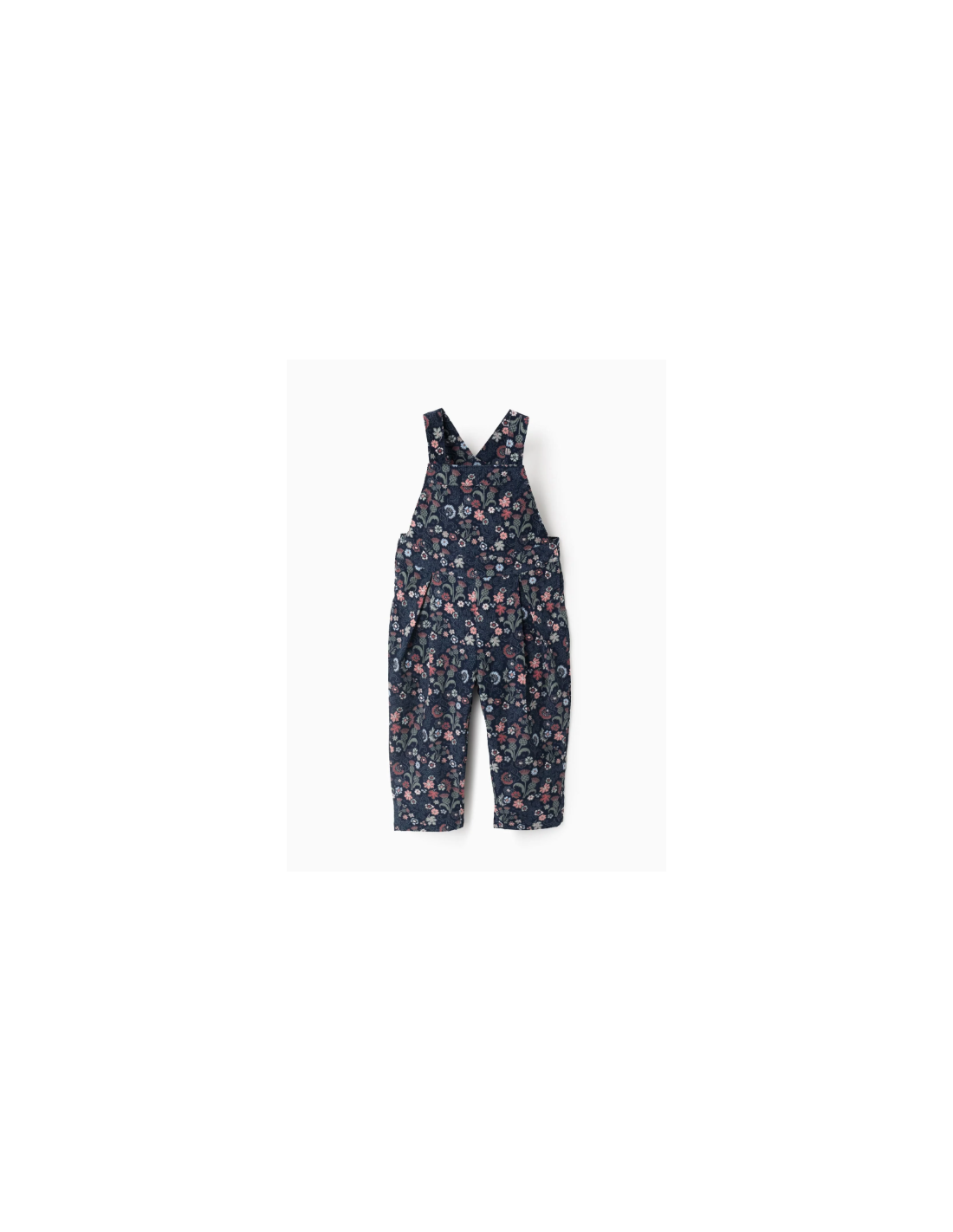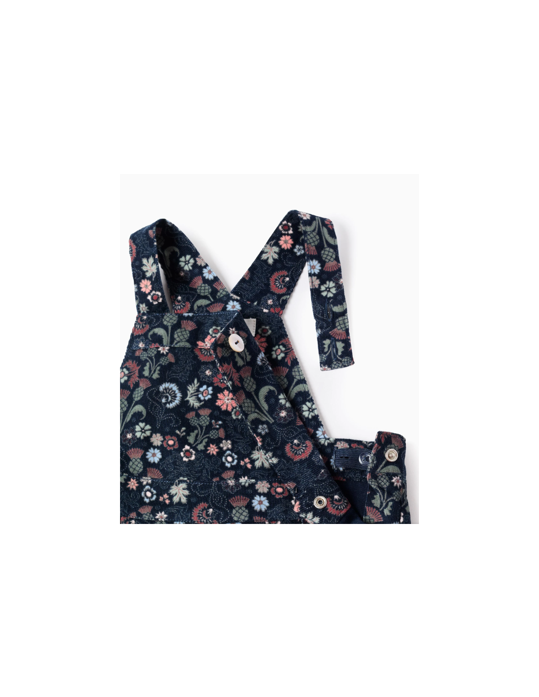 Peto de Pana Motivo Floral para Bebé Niña, Azul Oscuro