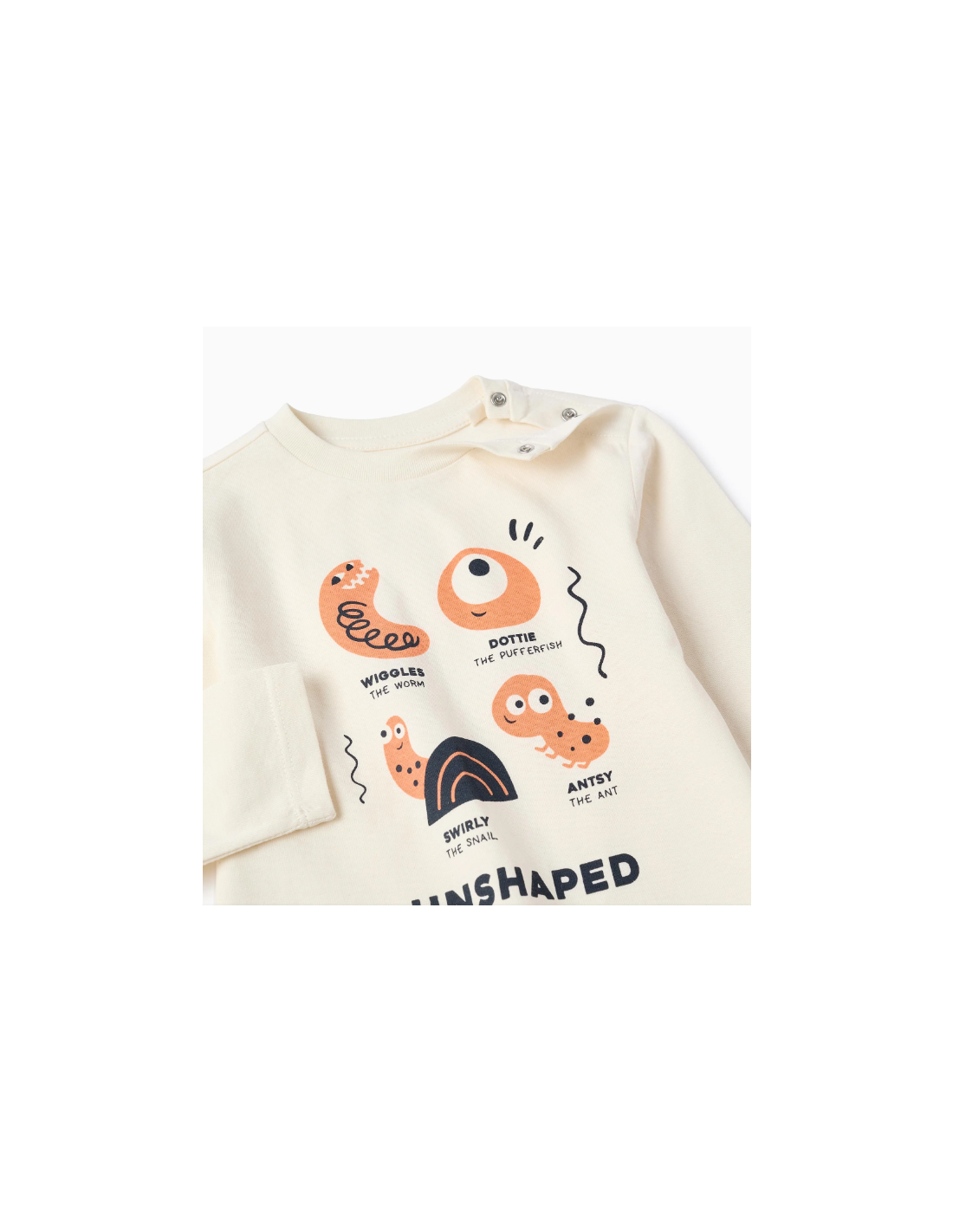 Camiseta beige de manga larga para bebé niño, 100% algodón. Estampado delantero de un caracol y sus insólitos amigos. Botones automáticos en el hombro para vestirla fácilmente. Etiqueta interior impresa para no irritar la piel. Un estampado divertido para el día a día. We Care: artículo certificado Oeko-Tex Standard 100, que garantiza la ausencia de sustancias nocivas o irritantes para la piel.