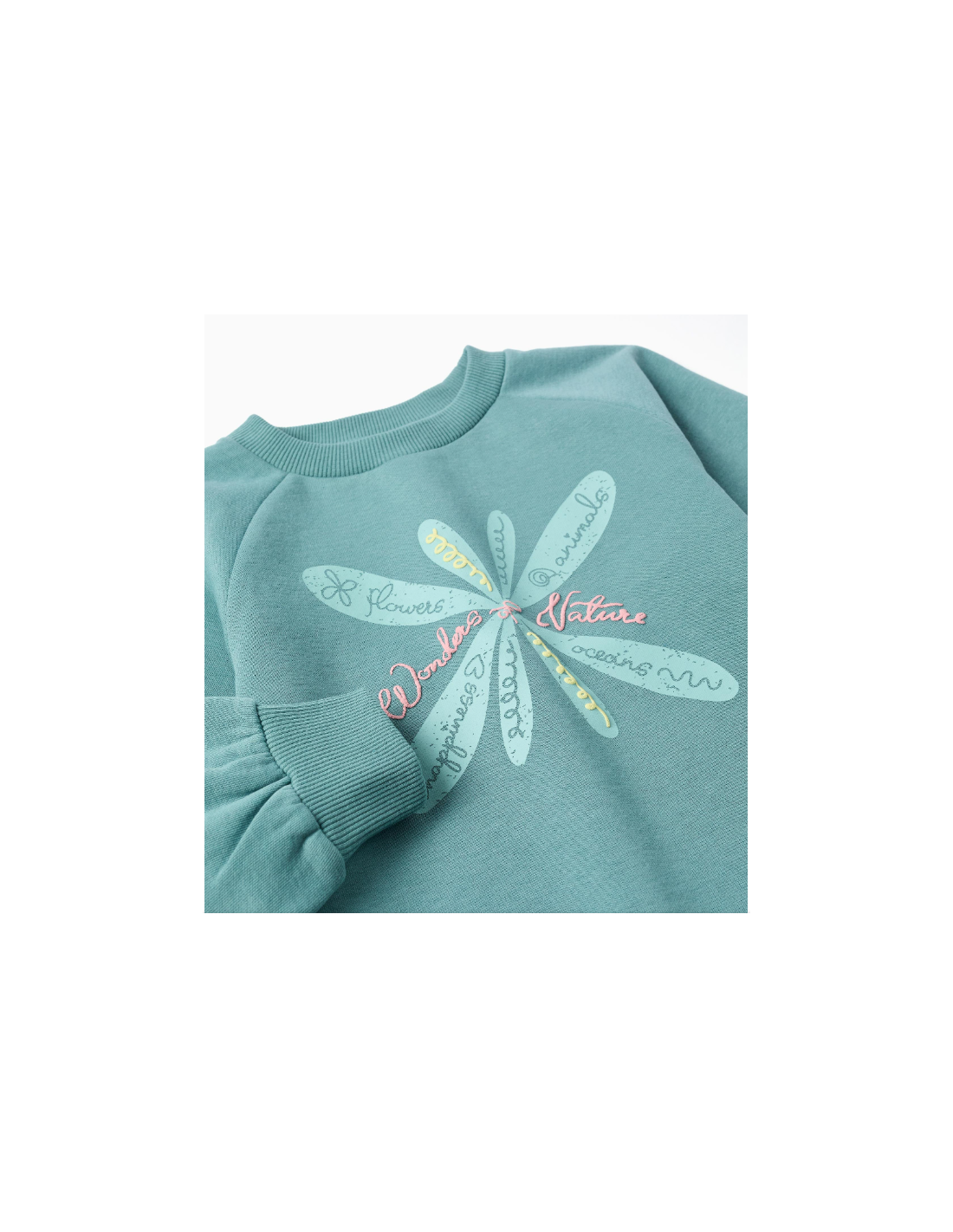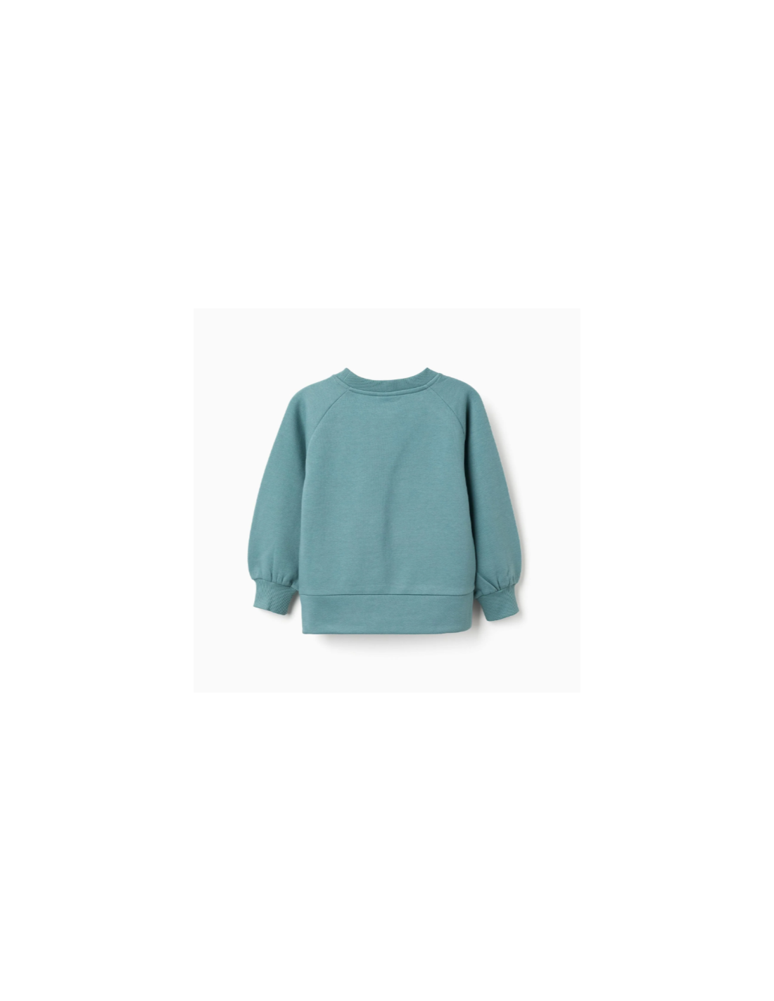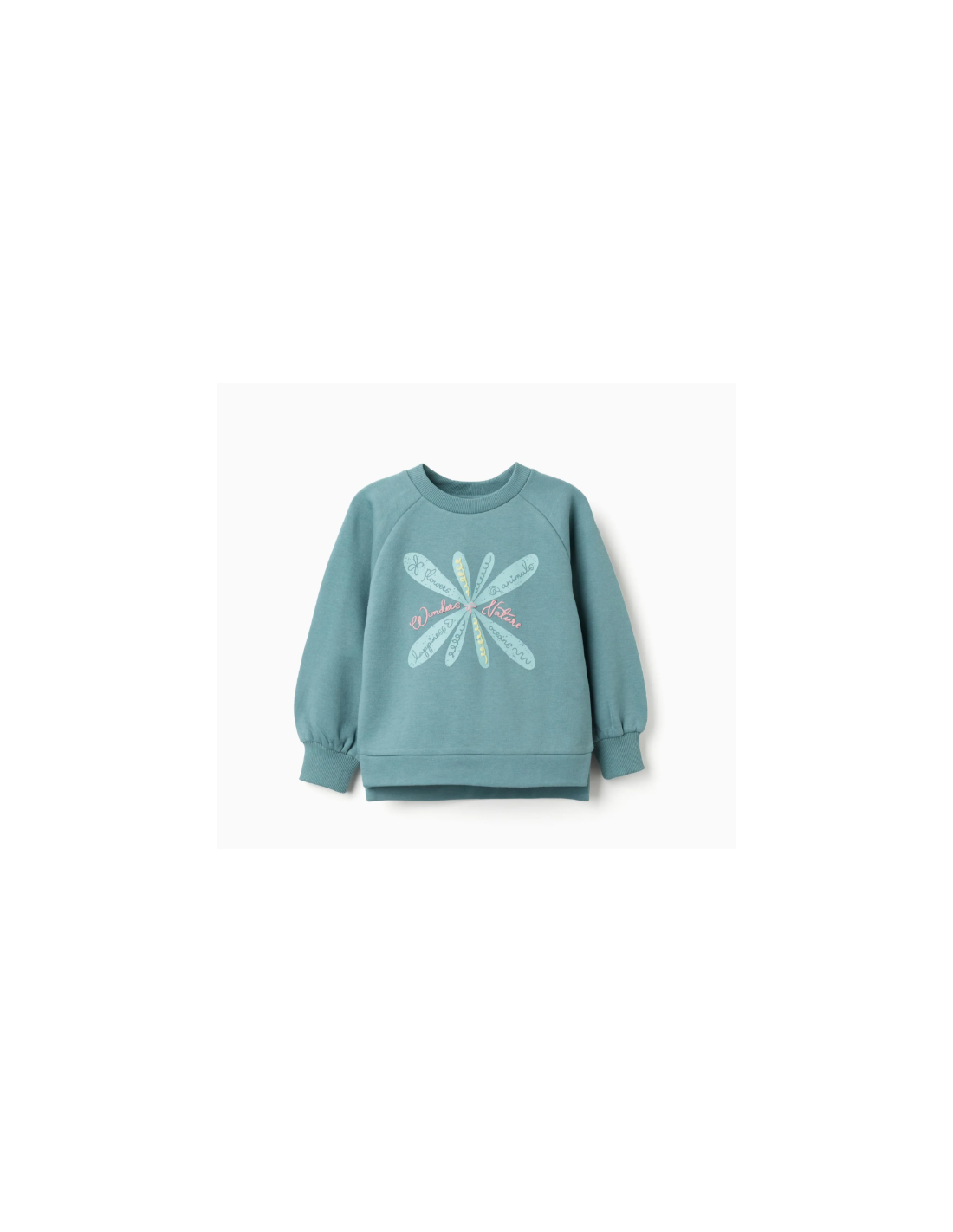Sudadera verde claro para niña, en mezcla de algodón, para un tacto suave y cómodo. Interior perchado para un mayor confort térmico. Estampado frontal en relieve. Mangas ranglán. Cuello y puños acanalados para un ajuste perfecto. Aberturas laterales en la base. Bajo asimétrico con espalda ligeramente más larga. ¡Una pieza cómoda e ideal para looks de entretiempo! We Care: Artículo certificado Oeko-Tex Standard 100, que garantiza la ausencia de sustancias nocivas o irritantes para la piel.