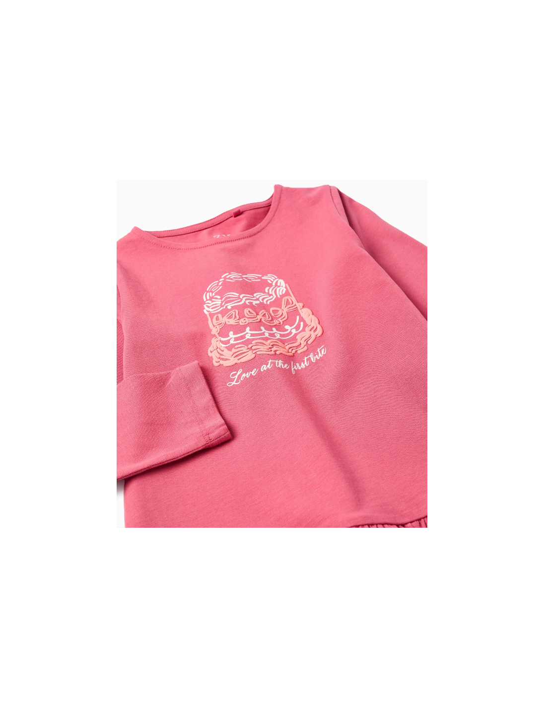 Camiseta de Manga Larga con Volantes para Niña 'Cake', Rosa Oscuro