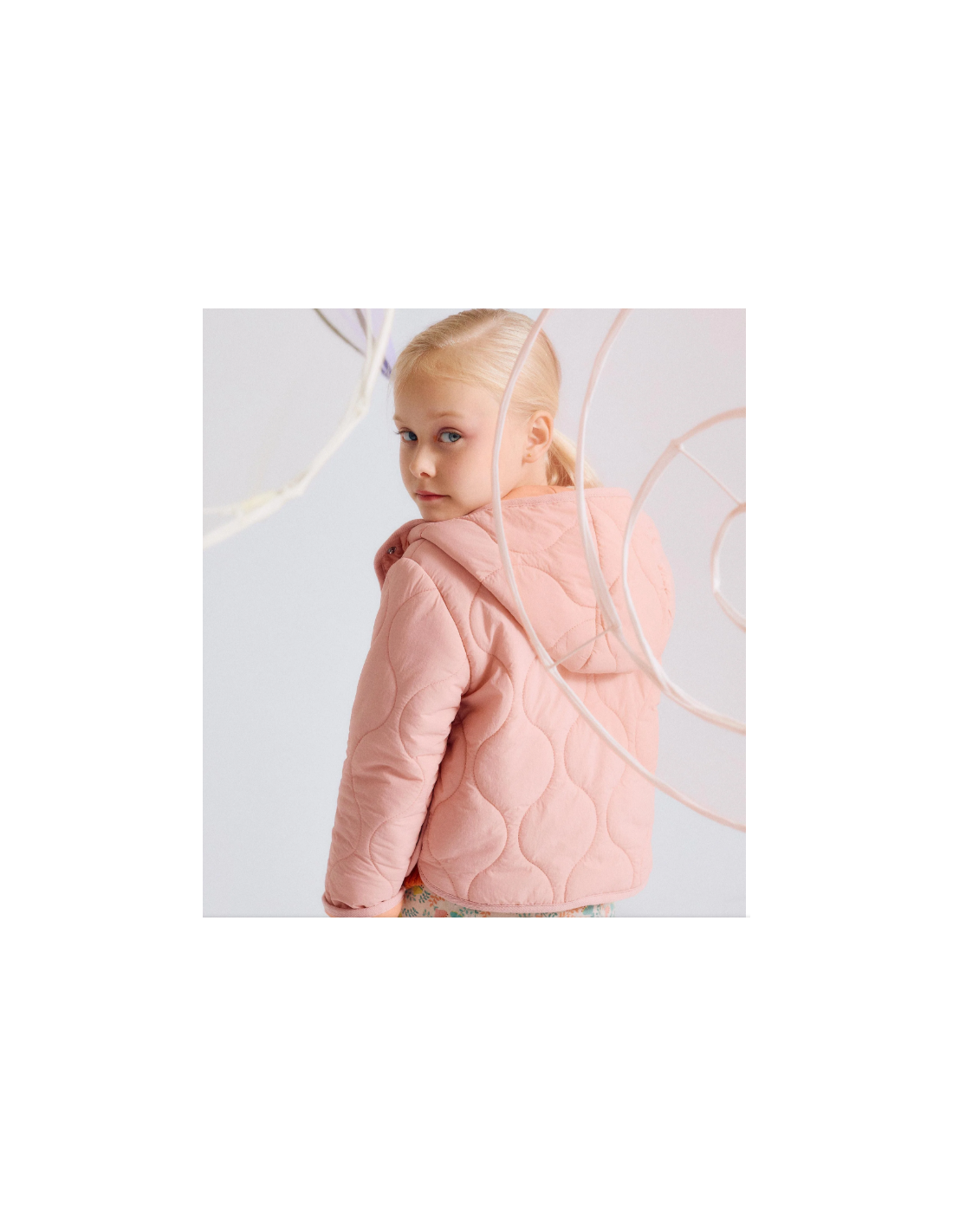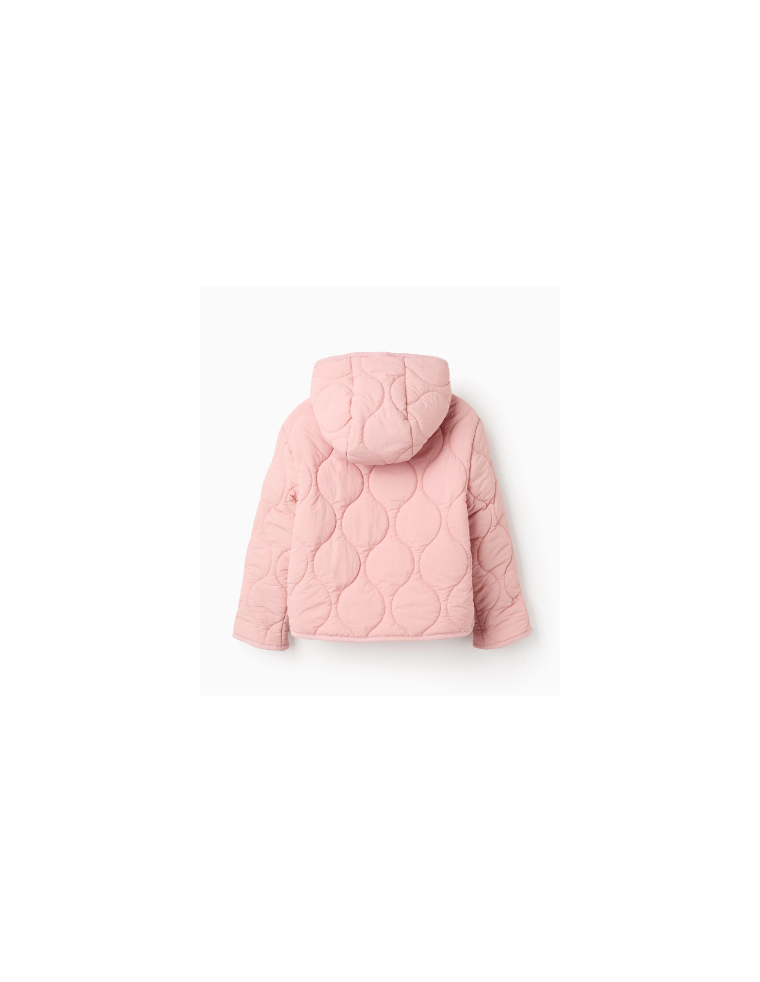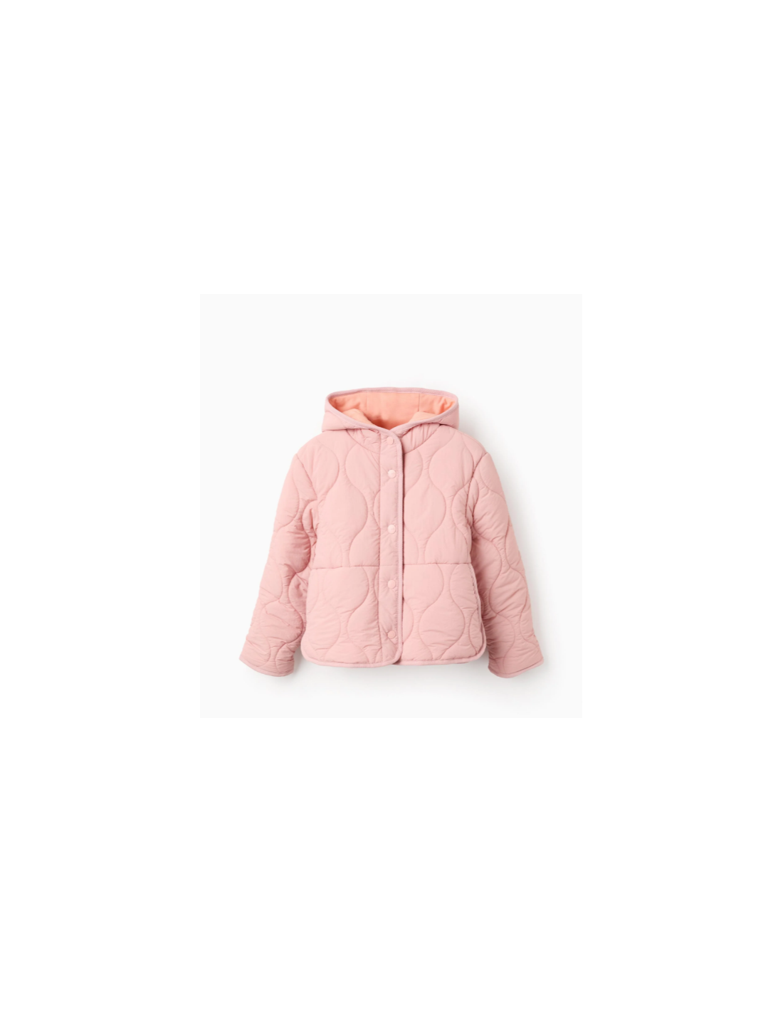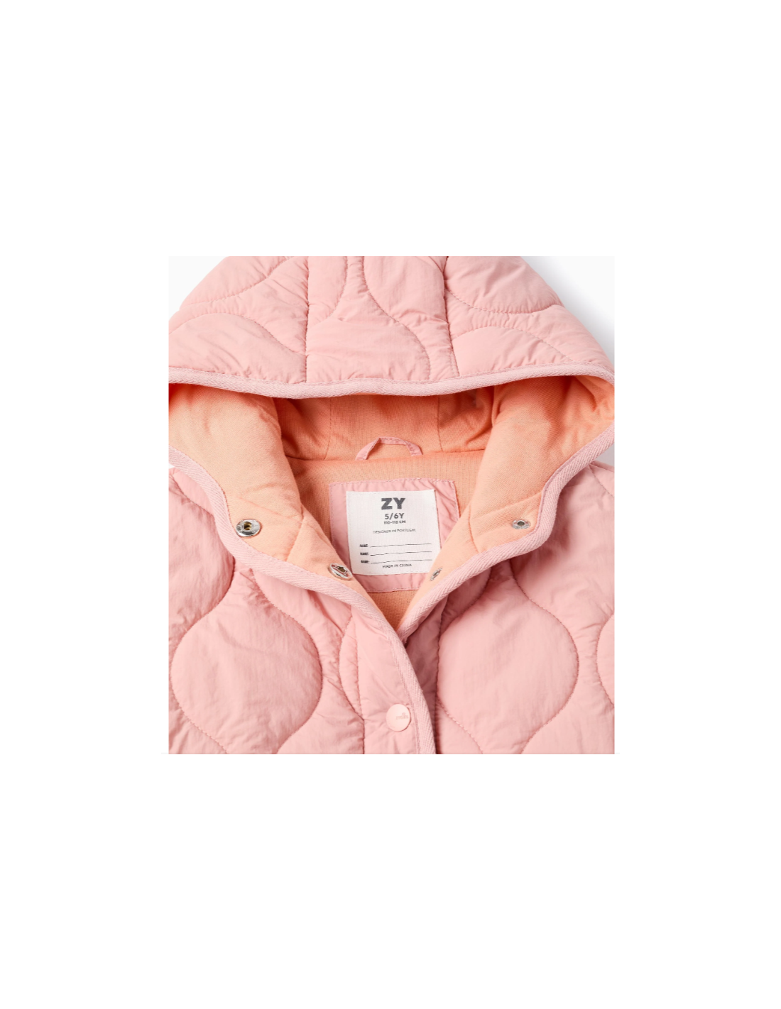 Parka acolchada rosa para niña, con capucha. Forro de punto suave y transpirable. Bolsillos laterales. Se abrocha con botones de presión para vestirla fácilmente. Pequeñas aberturas en los laterales para un look más fluido. Etiqueta interior para la identificación de la niña. Una prenda versátil y cómoda, perfecta para el otoño-invierno. We Care: esta prenda está rellena de poliéster reciclado.