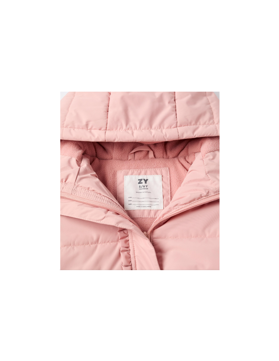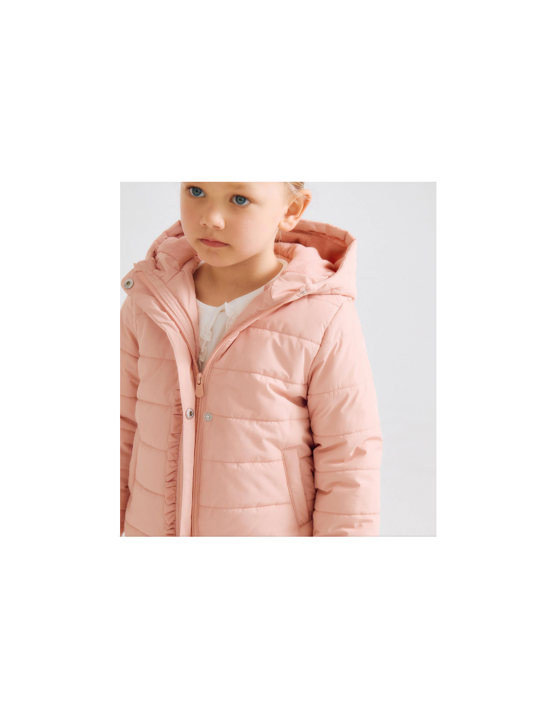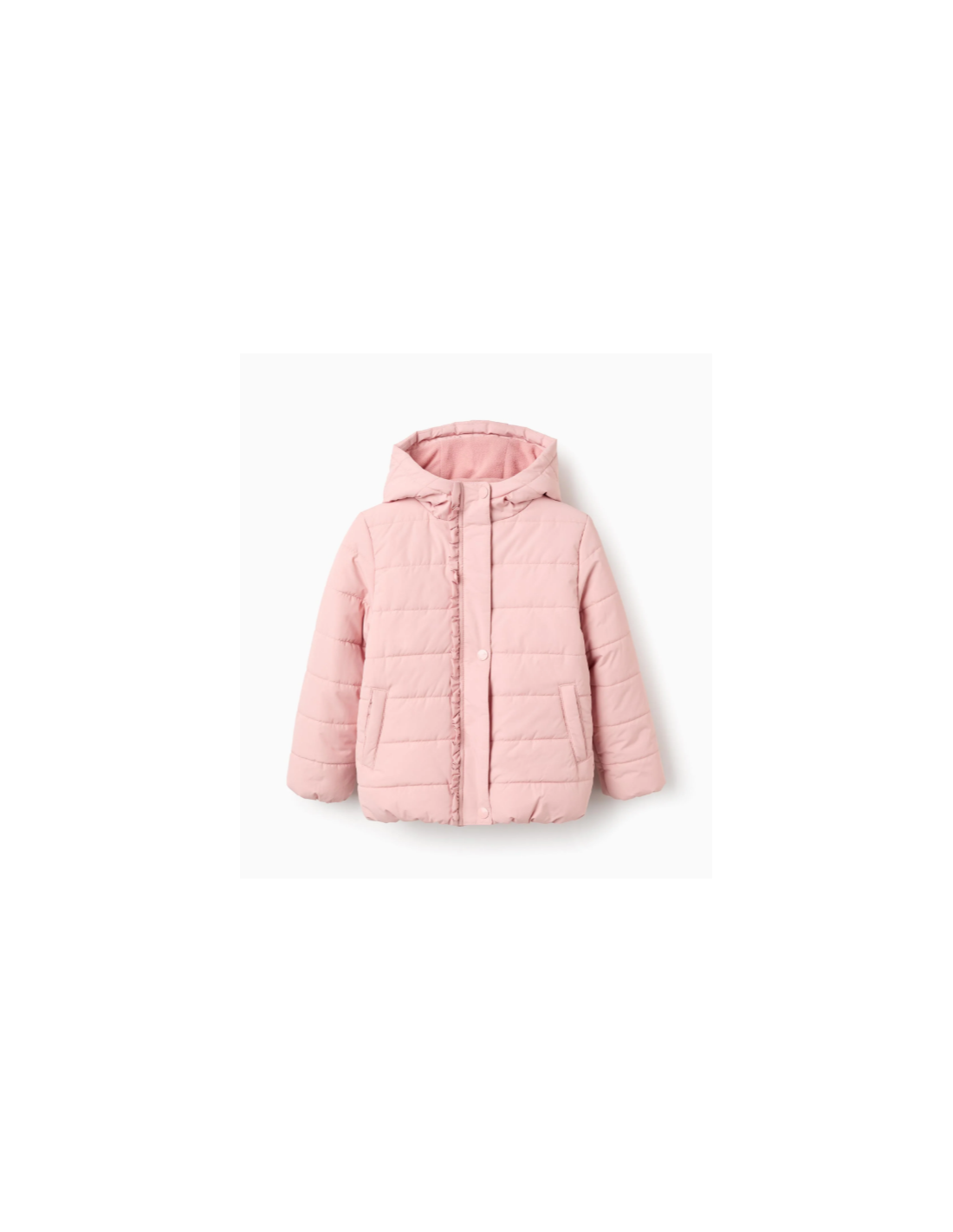 Chaqueta rosa acolchada para niña, con capucha y forro polar para mayor calidez. Detalle de hoja en el centro. Bolsillos laterales. Se abrocha con cremallera y botones a presión para vestirla fácilmente. Bajo y puños ligeramente elásticos para un ajuste perfecto. Etiqueta interior para la identificación del niño. Una prenda versátil y cómoda, perfecta para el invierno. We Care: esta prenda está rellena de poliéster reciclado.