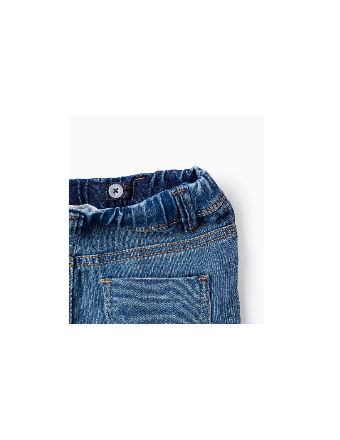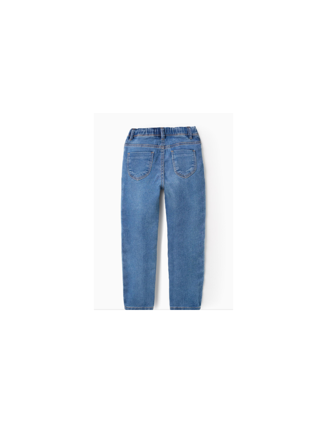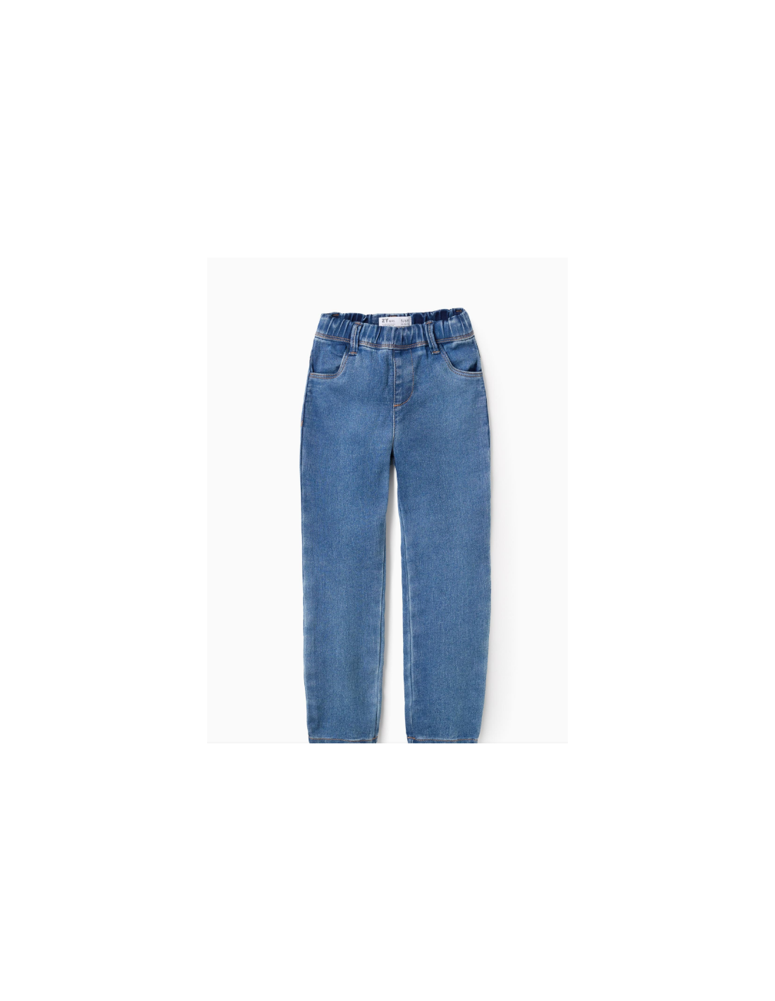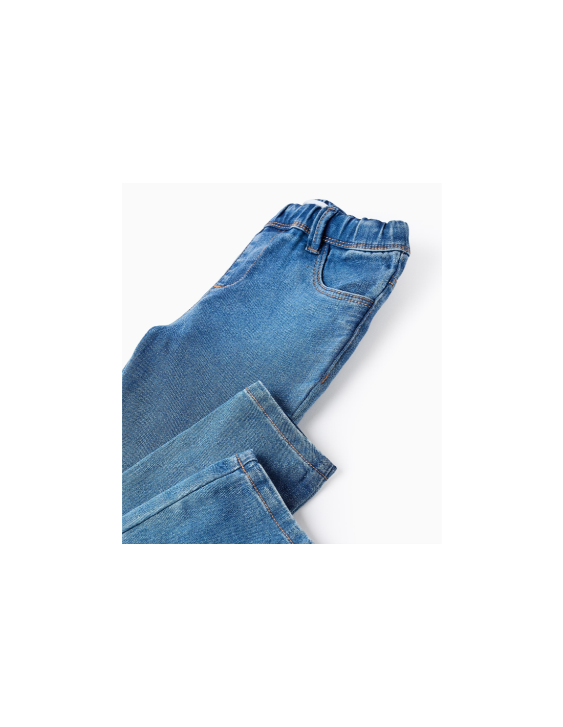 Jegging azul para niña, confeccionados en tejido vaquero de algodón elástico para mayor comodidad y libertad de movimientos. Cintura elástica y cómoda, ajustable en el interior con elásticos y botones. Cuatro bolsillos. Una opción perfecta para el día a día.