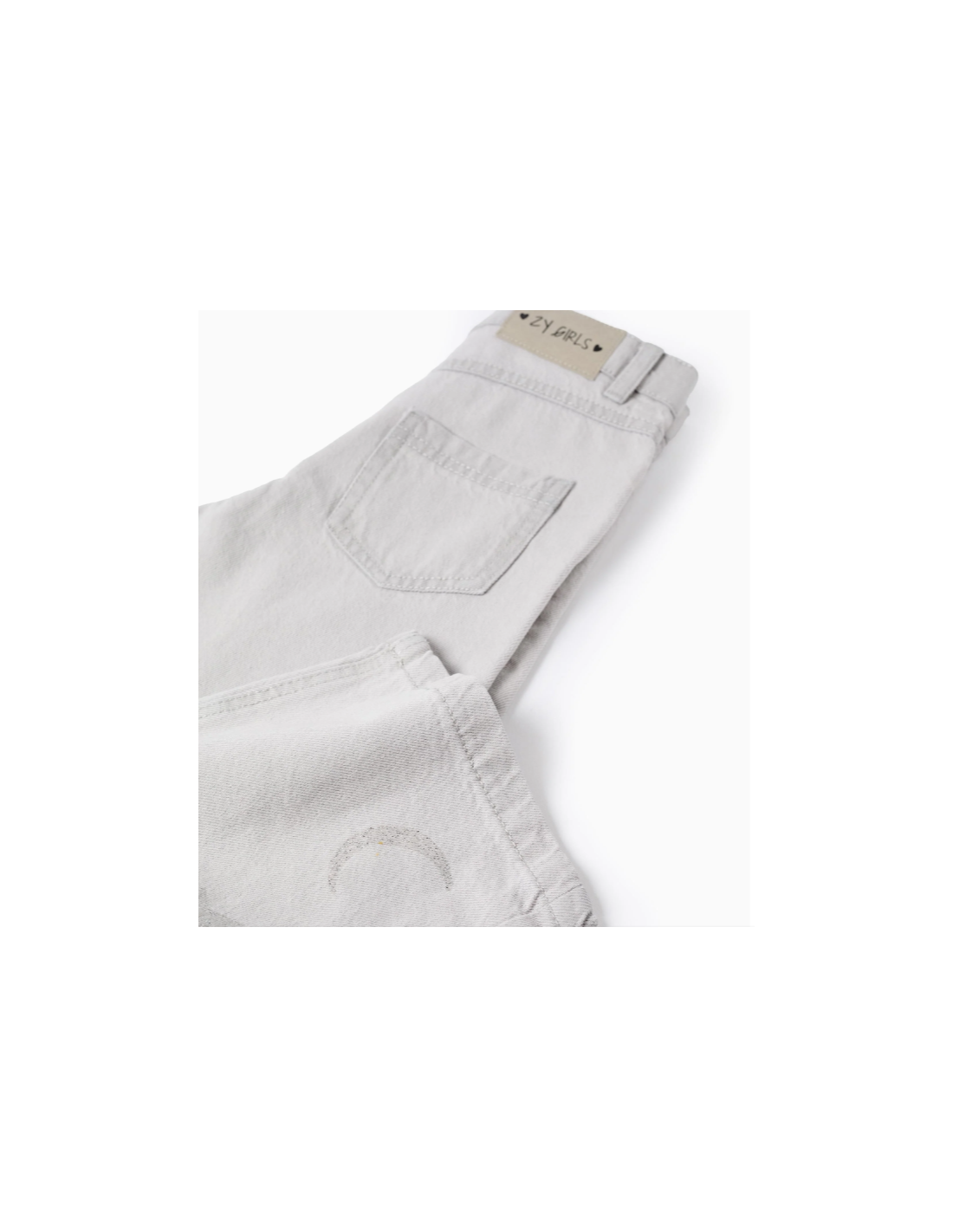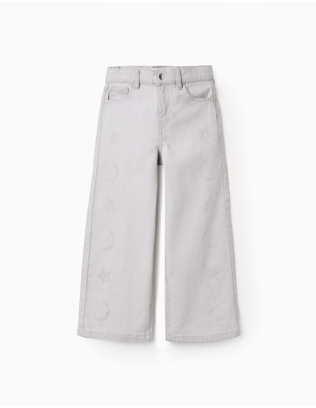 Vaqueros con estampado de estrellas y lunas brillantes para niña, gris