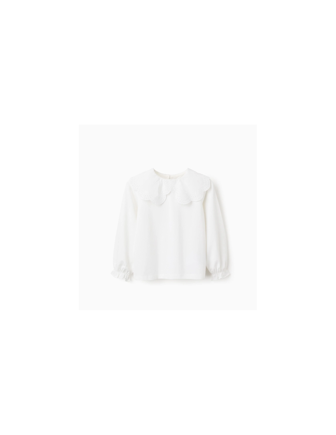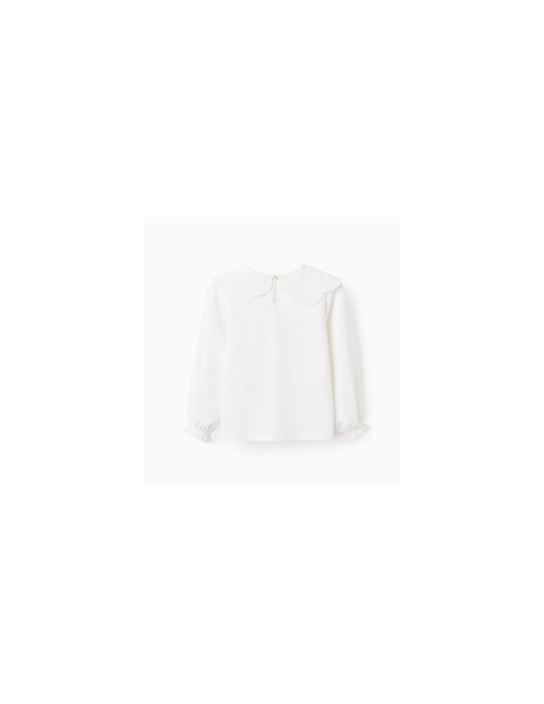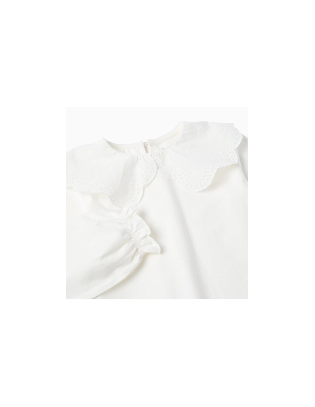 Camiseta de Manga Larga con Bordado Inglés para Niña, Blanca