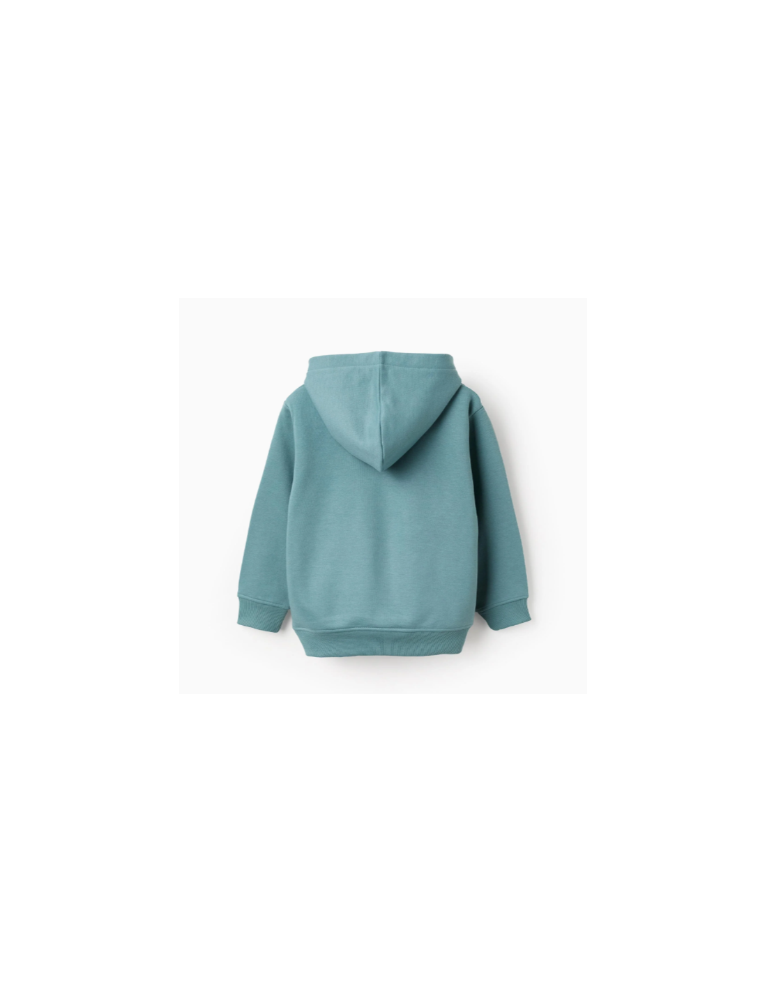 Sudadera con capucha turquesa para niño, con interior perchado para mayor confort térmico. Estampado frontal. Bordes acanalados para un ajuste perfecto. Para el día a día, ¡una prenda práctica y acogedora! We Care: artículo con certificación Oeko-Tex Standard 100, que garantiza la ausencia de sustancias nocivas o irritantes para la piel.