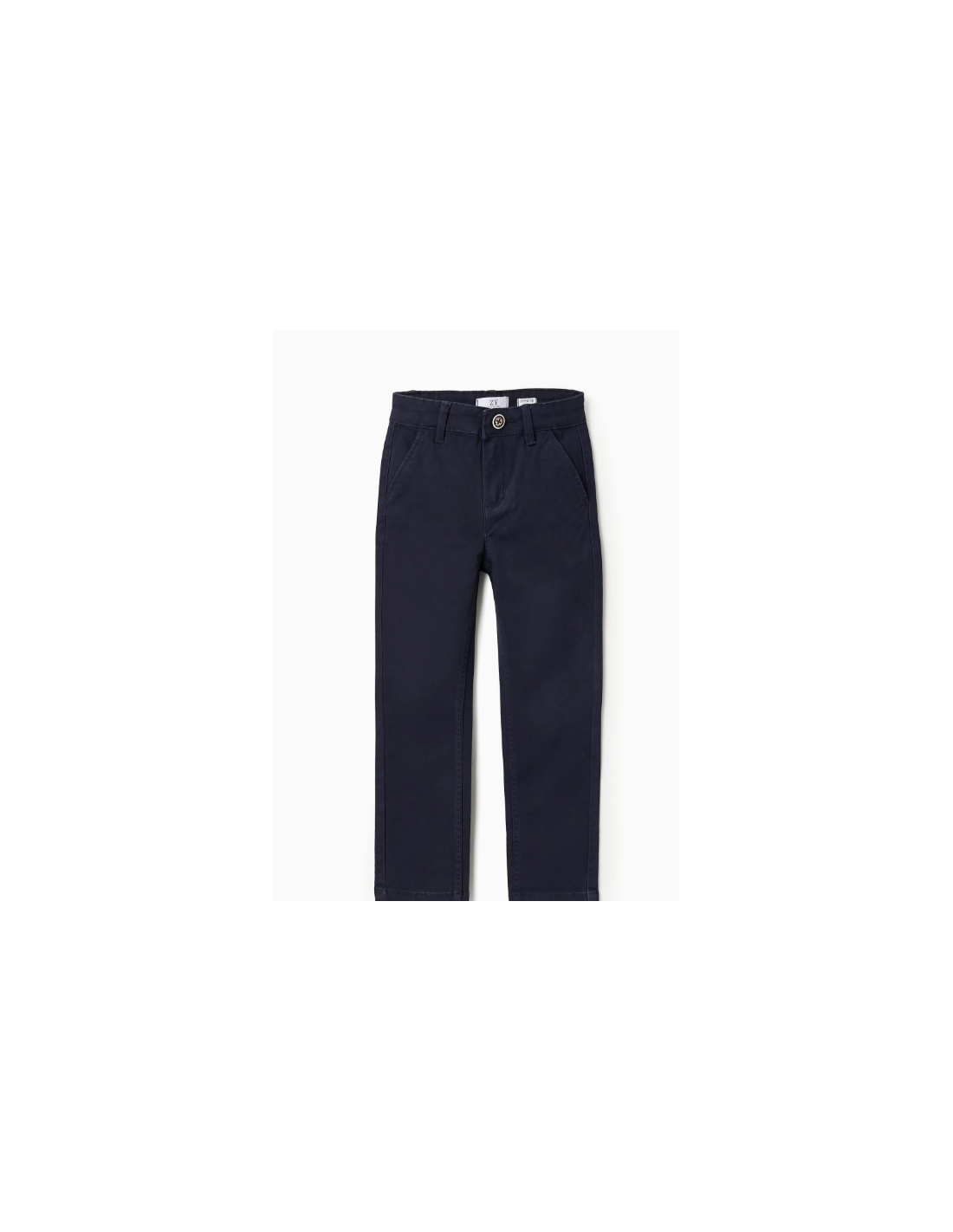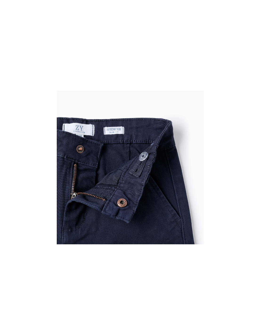 Pantalón Chino de Sarga para Niño 'Slim Fit', Azul Oscuro