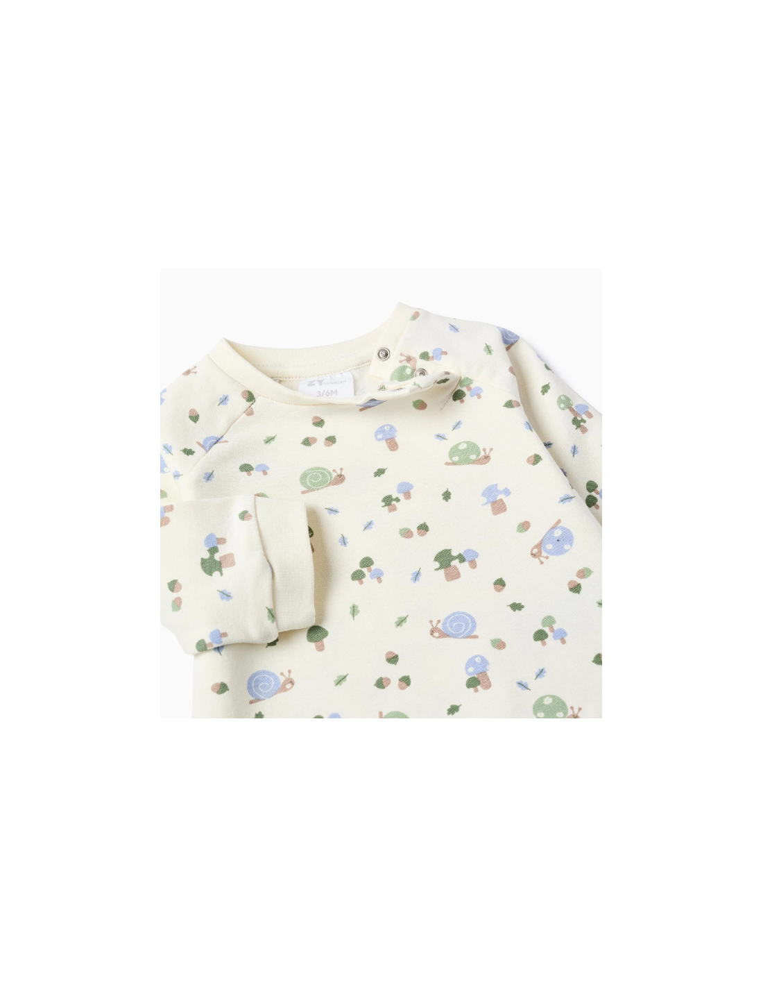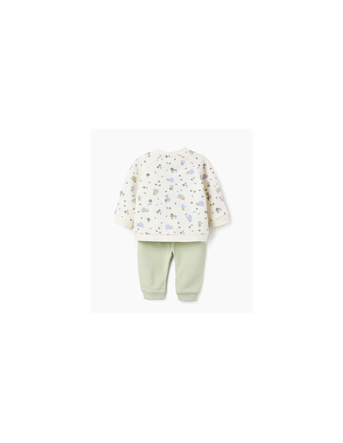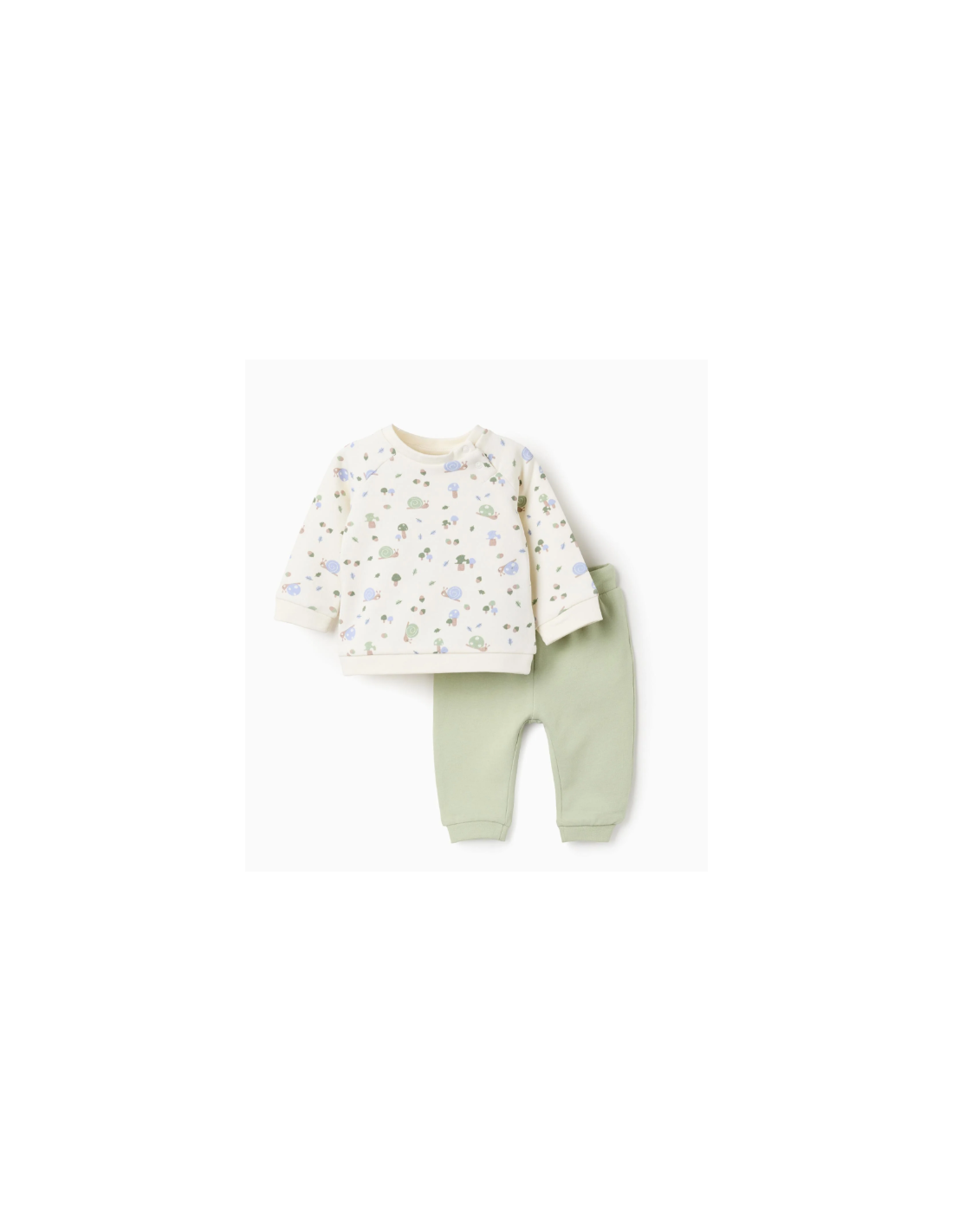 Conjunto de dos piezas para recién nacidos, en tonos beige y verde. Interior perchado para mayor confort térmico. Incluye una sudadera con motivos de caracoles y setas. Botones a presión en el cuello para vestirlo fácilmente. Bordes flexibles para un ajuste perfecto y el máximo confort. Pantalón con cordón de ajuste. ¡Un conjunto cálido y divertido!